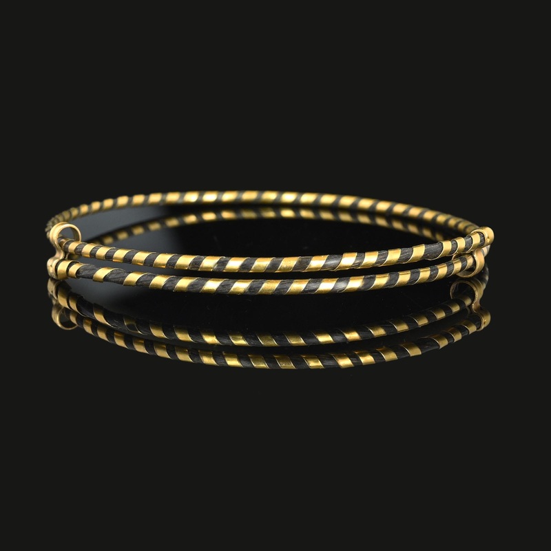 This bangle bracelet, adorned with a single band of elephant hair wrapped in 9K gold, is a remarkable and sought-after design from the Victorian era. It can be easily slipped on and adjusted to fit various wrist sizes. Dating back to around 1880/1890, thes