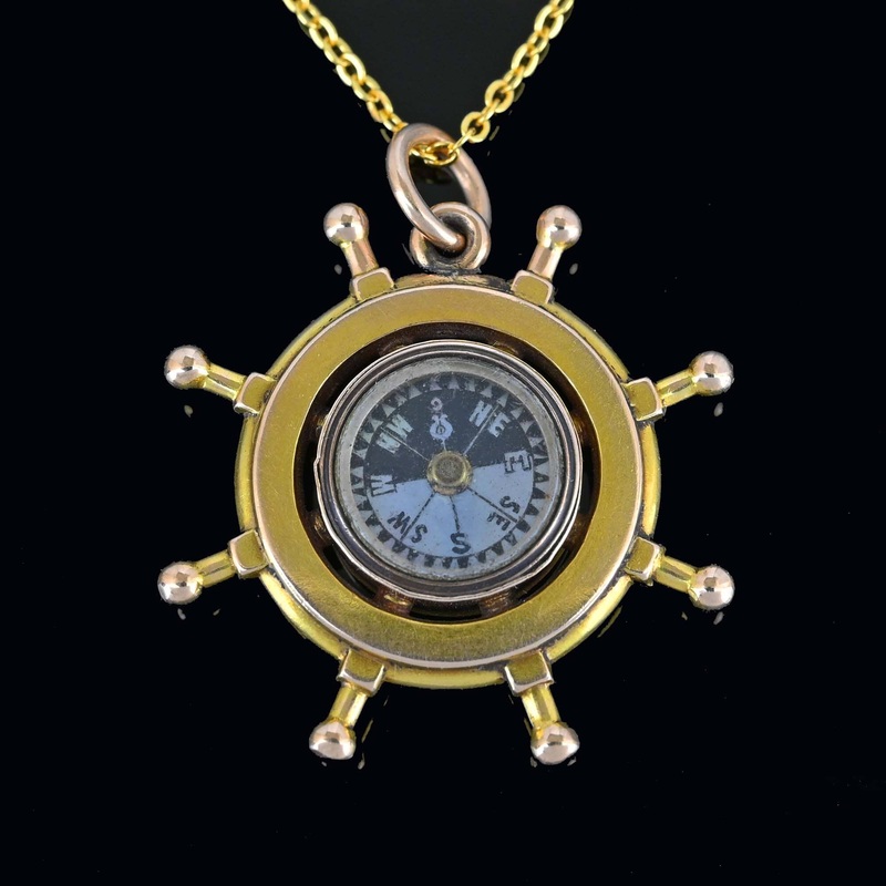 Antique Victorian 15K Gold Comapss Fob Pendant Ships Wheel