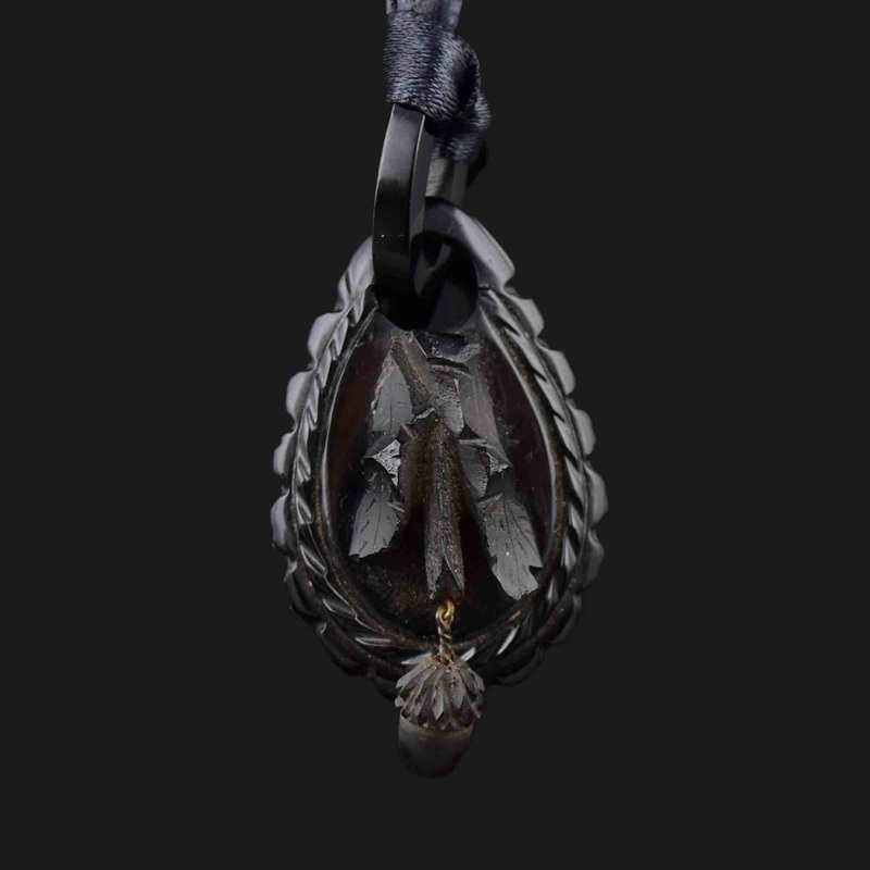 Antique Victorian Carved Whitby Jet Acorn Pendant