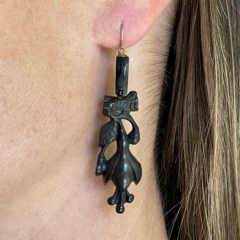 Be the first to review “Antique Victorian Snowdrop Flower Whitby Jet Earrings”