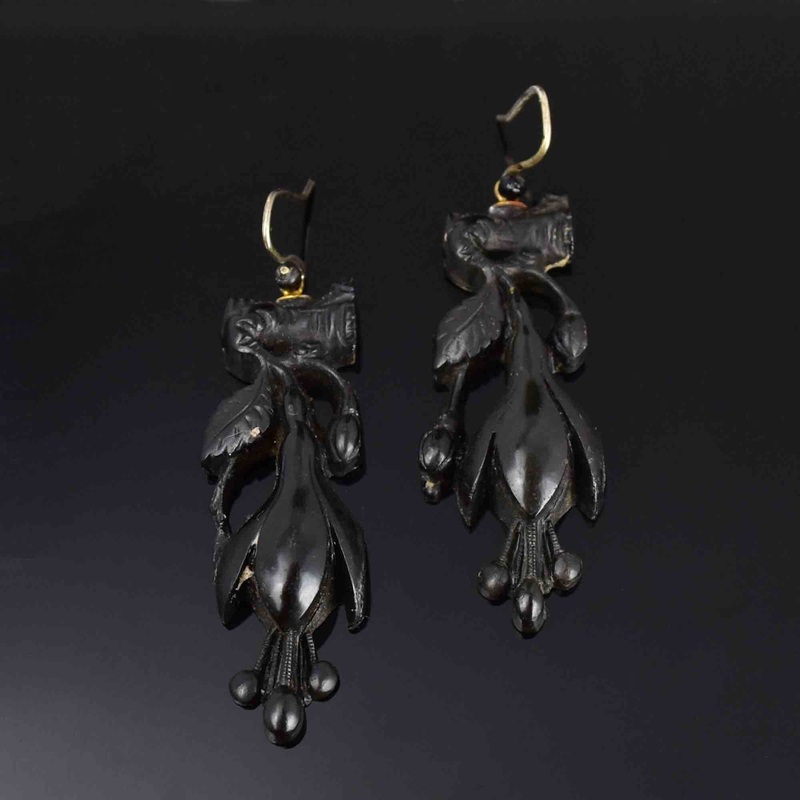 Antique Victorian Whitby Jet Snowdrop Dangle Earrings