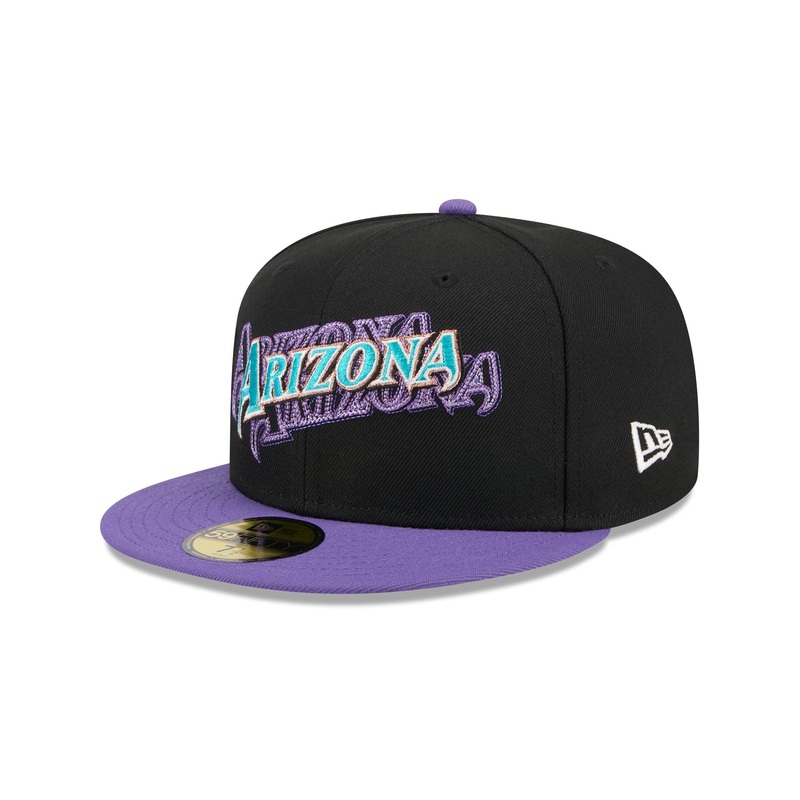 The Arizona Diamondbacks Shadow Stitch 59FIFTY Fitted Cap features an embroidered Diamondbacks Cooperstown shadow stitched wordmark at the front panels with a matching MLB Batterman logo at the rear and a gray undervisor.
