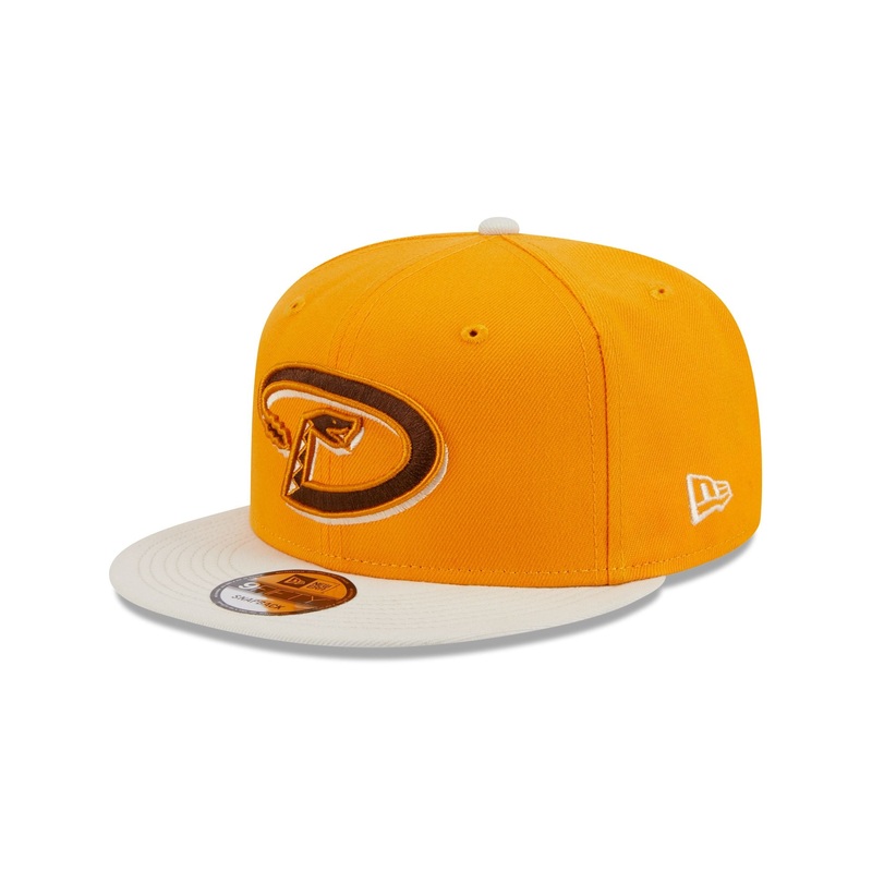 The Arizona Diamondbacks Tiramisu 9FIFTY Snapback features an embroidered Diamondbacks logo at the front panels with a snapback closure at the rear and a gray undervisor.