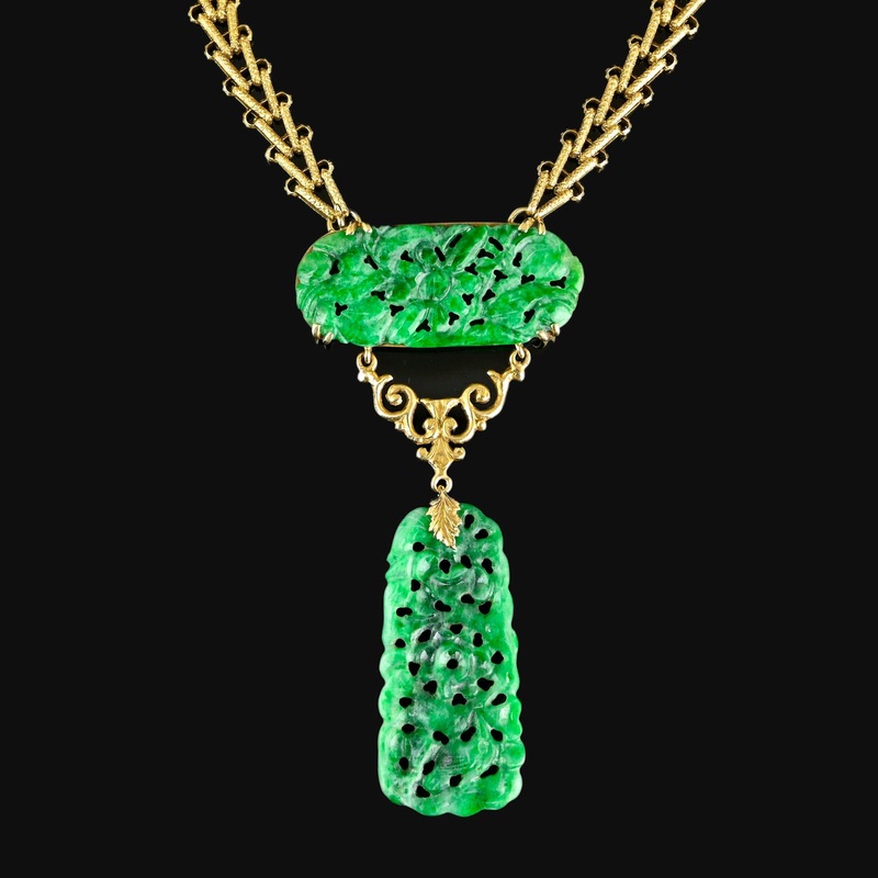 Art Deco 14K Gold Walter Lampl Jade Necklace