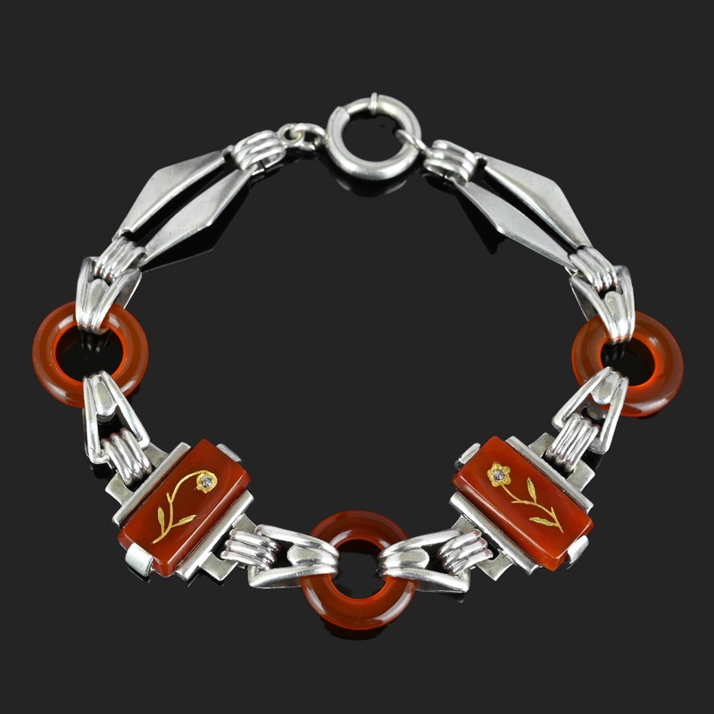 Art Deco Diamond Rose Of Sharon Carnelian Bracelet