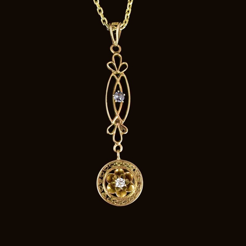 Be the first to review “Art Nouveau 10K Gold Diamond Sapphire Lavalier Necklace”