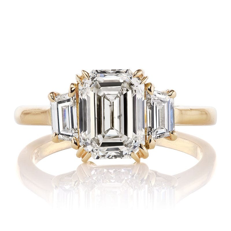 1.70 Carat Emerald Cut Ring with Trapezoid Side StonesTheArtemis 1.70 ring is an AB original design made right here in NYC. The ring centers a GIA-certified 1.70-carat emerald cut diamond of J color, SI1 clarity. The stone is set in a 4 double prong 18kt y