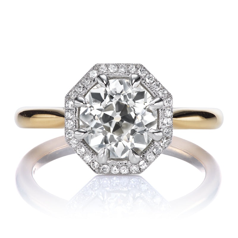 Two-Tone 1.77ct Old European Cut Diamond with Octagon Diamond Halo
