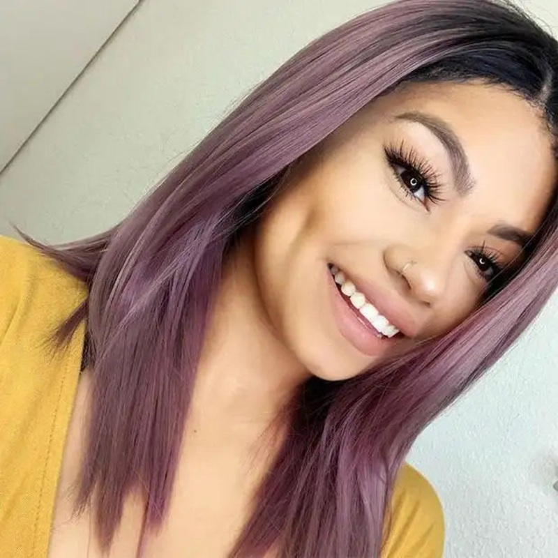 Ash Violet Pink Brazilian Ombre Human Hair Lace Front Wig
