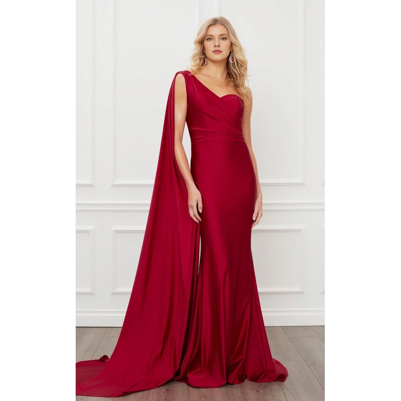 Asymmetric collar sleeveless tight corset and floor length evening gown