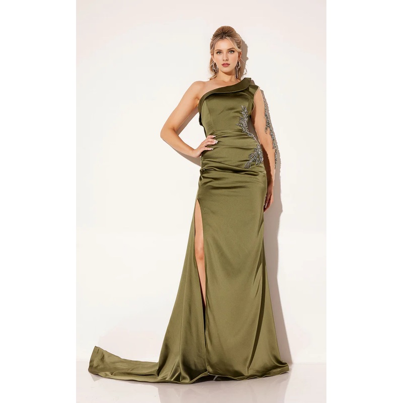Asymmetric neckline backless side slit and floor length Prom dress