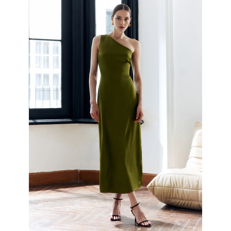 Asymmetric satin backless slim fit godons even dresses