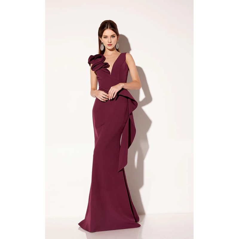 Asymmetric shoulder strap V-neck satin mermaid and floor length Prom dress