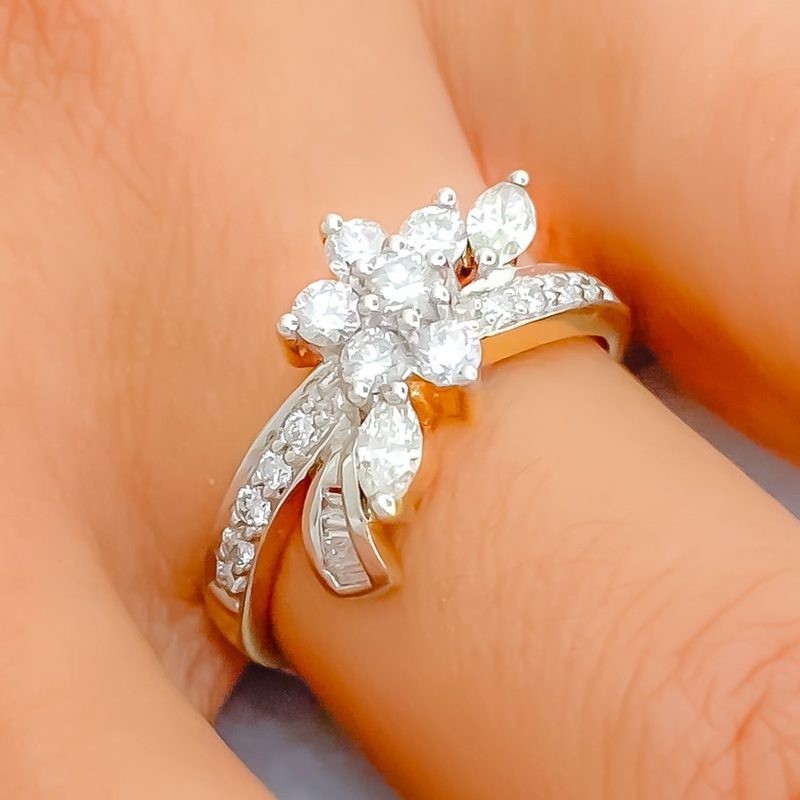 Asymmetrical Floral Diamond + 18k Gold Ring