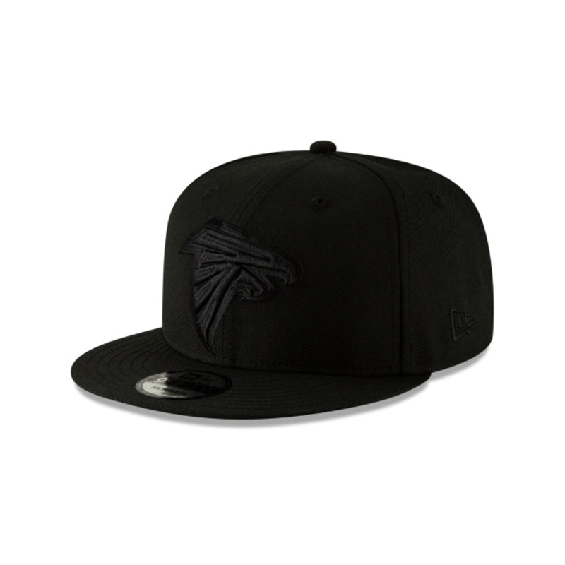 The Atlanta Falcons Black on Black 9FIFTY Snapback features an allover black fabrication with an embroidered tonal Falcons logo at the front panels and an adjustable snapback closure at the rear.