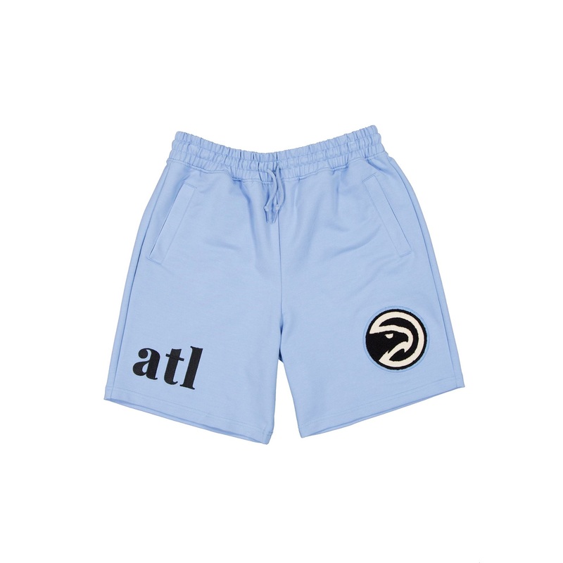 The Atlanta Hawks 2024 City Edition Shorts feature a chenille applique Hawks logo at the left leg and an embroidered logo on the right.
