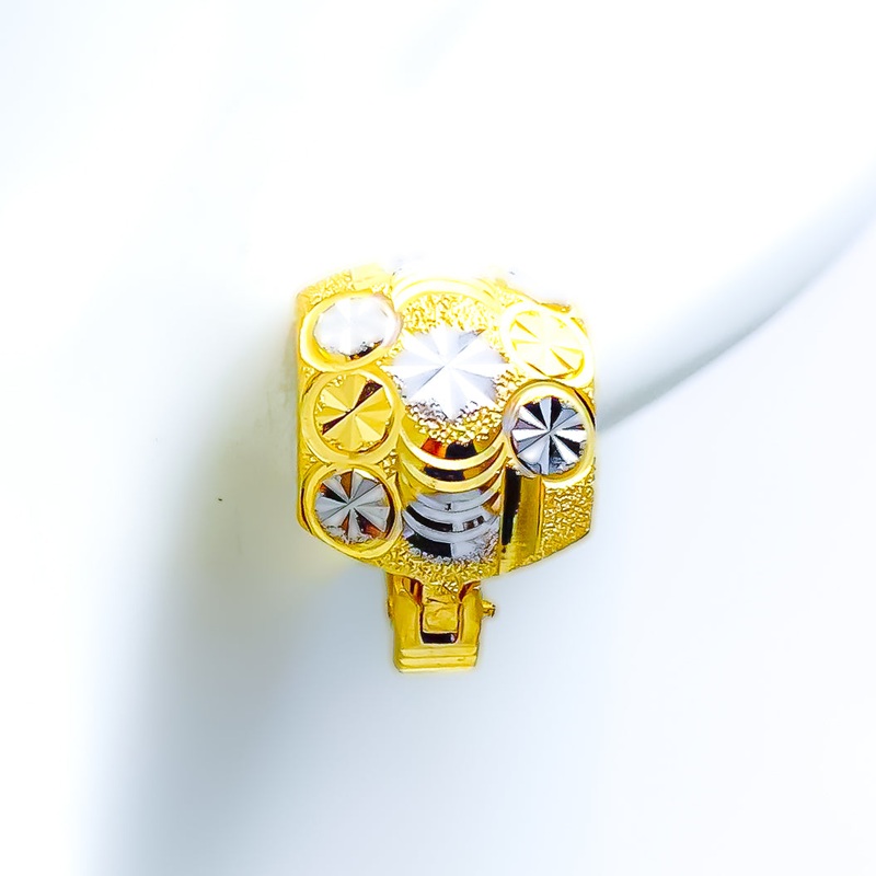 Captivating Attractive Engraved Bali Earrings, a true symbol of elegance. Crafted in luxurious 22k yellow gold weighing 3.9 grams, these exquisite earrings boast intricate engravings. With a chic Bali hoop design and a French clip, they offer a seamless blend of style and comfort. The 0.5″ diameter adds a touch of sophistication to any ensemble. Elevate your fashion game with these mesmerizing earrings.
