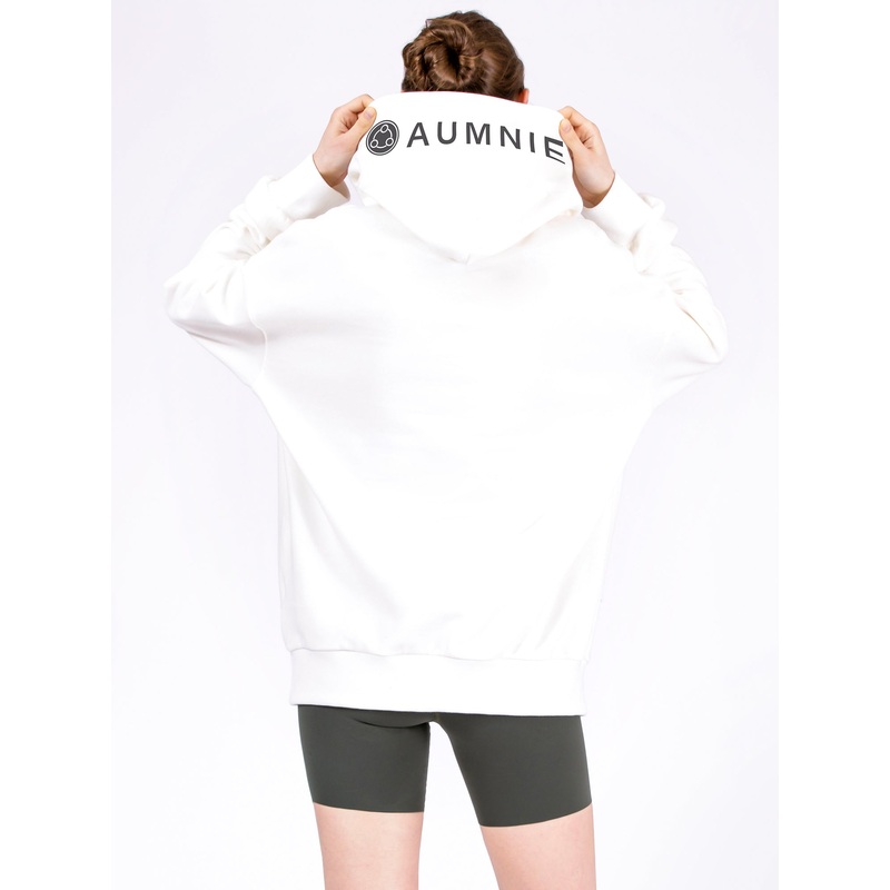 NATURAL COTTON + AUMNIE select material + Recyclable natural cotton + Pre-shrunk and colour-fasted with sustainable methods to minimize environmental impactDESCRIPTIONLarge AUMNIE logo printed on the hoodieAUMNIE logo on the right sleeveAUMNIE logo tab on