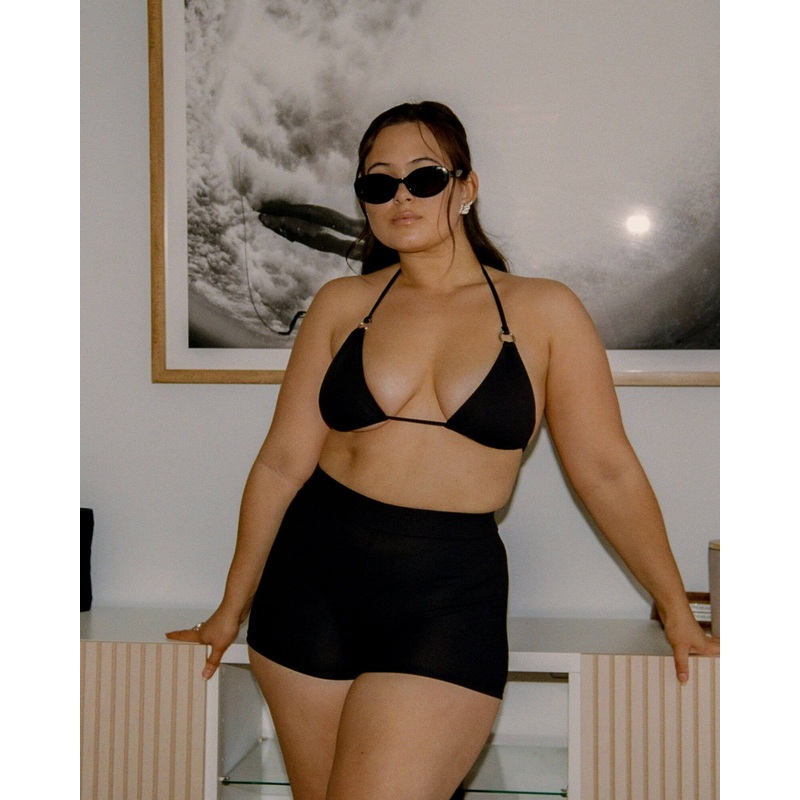 Our Aureli bikini shorts are a must-have for adding the perfect sporty vintage touch to your beach ensemble. Featuring an elastic waistband, they serve as an excellent complement to all of our Black rib swimsuits, as they are crafted from the exact same st