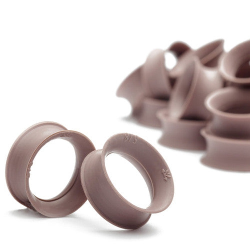 The autumn brown skin eyelets are made from implant grade silicone by Kaos Softwear. The ultra-thin wall eyelets are made from higher stiffness silicone with a less tacky surface. Just strong enough to hold a piercing open, almost like wearing nothing at all. These are sold as a pair. Choose your size below.