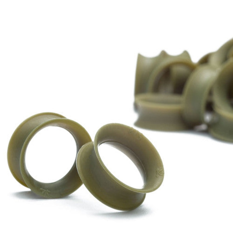 The avocado skin eyelets are made from implant grade silicone by Kaos Softwear. The ultra-thin wall eyelets are made from higher stiffness silicone with a less tacky surface. Just strong enough to hold a piercing open, almost like wearing nothing at all.Th