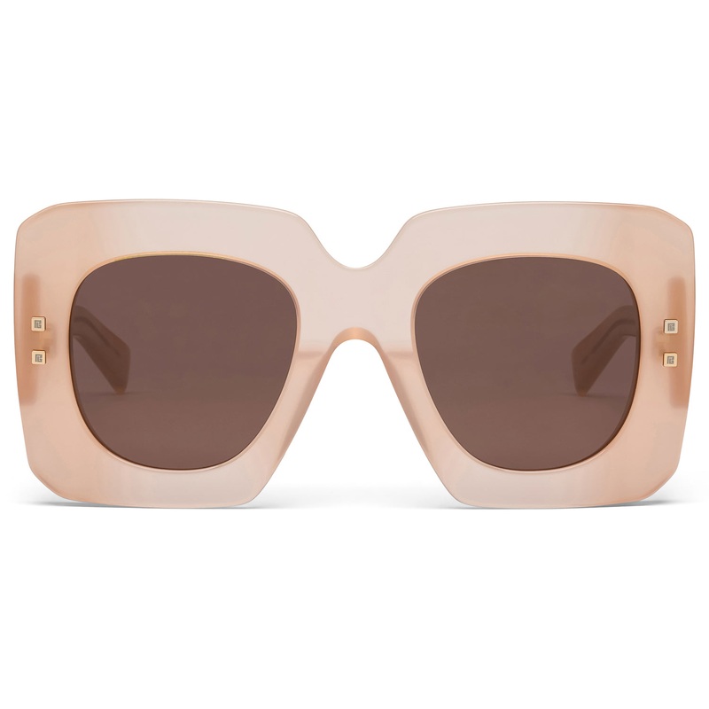 The Balmain B-Bold lives up to its name, drawing inspiration from the houses sharply tailored midcentury silhouettes and the commanding presence of sculptural shoulder lines. This oversized, full-acetate frame offers both elegance and edgeproviding an air of mystery while making a bold impression. While its soft lens shape and squared eye rims nod to Monsieur Balmains celebrated 70s designs, the frames striking geometry places it firmly in the present. Signature details include a golden Balmain logo at each temple and four PB-etched square rivets at the front. Available in three runway-inspired colorwaysclassic black and gold, a soft cloudy nude with gold, and a warm Havana tortoiseshell with subtle golden accents. Handmade in Japan. Includes Balmain box, hard case, soft case, cleaning cloth, and 1-year manufacturer warranty.