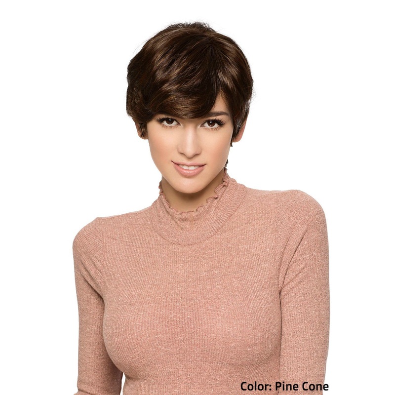 Short tousled bob with tight layers for a professional look.Synthetic Hair: Ready-to-wear, pre-styled and designed to look and feel like natural hair.SpecificationsCap SizeSemi AverageCap ConstructionMachine TiedLength (approx)Front 5", Side 4", Nape 2"Wei