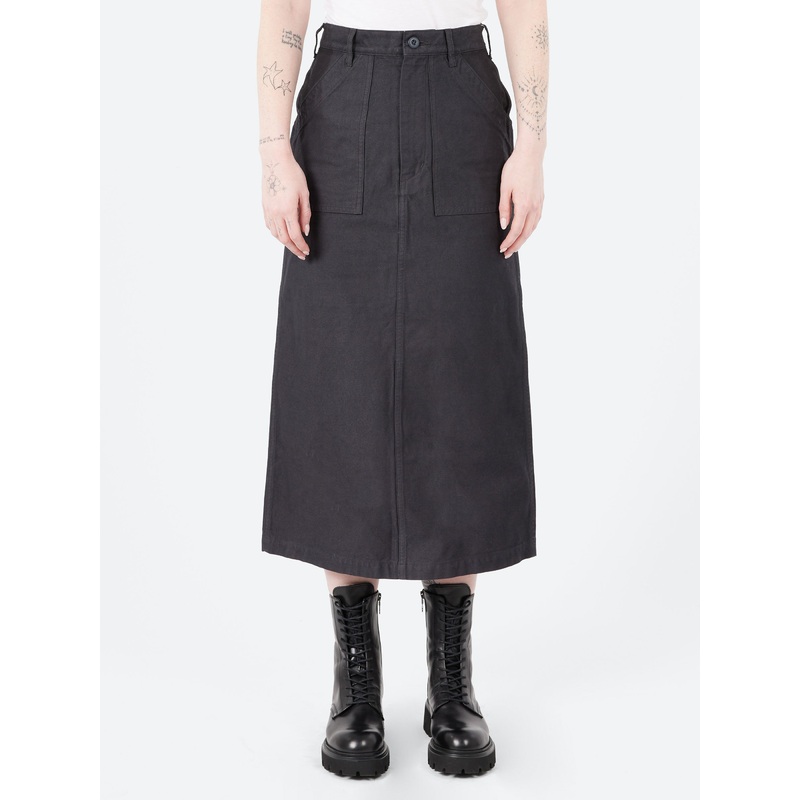 This Nigel Cabourn skirt is inspired by the OG-107 Utility Pants (commonly known as Baker Pants) worn by the US military for work. The material is soft back satin and is finished with a back slit for extra movement.Mid to high-riseButton closure with zip f