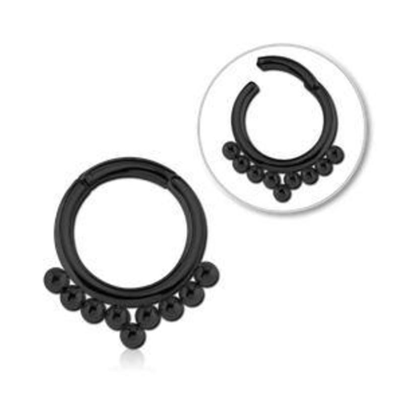 Bali Beaded Black Hinged Segment Ring 16g – 5/16″ diameter (8mm) Black Stainless