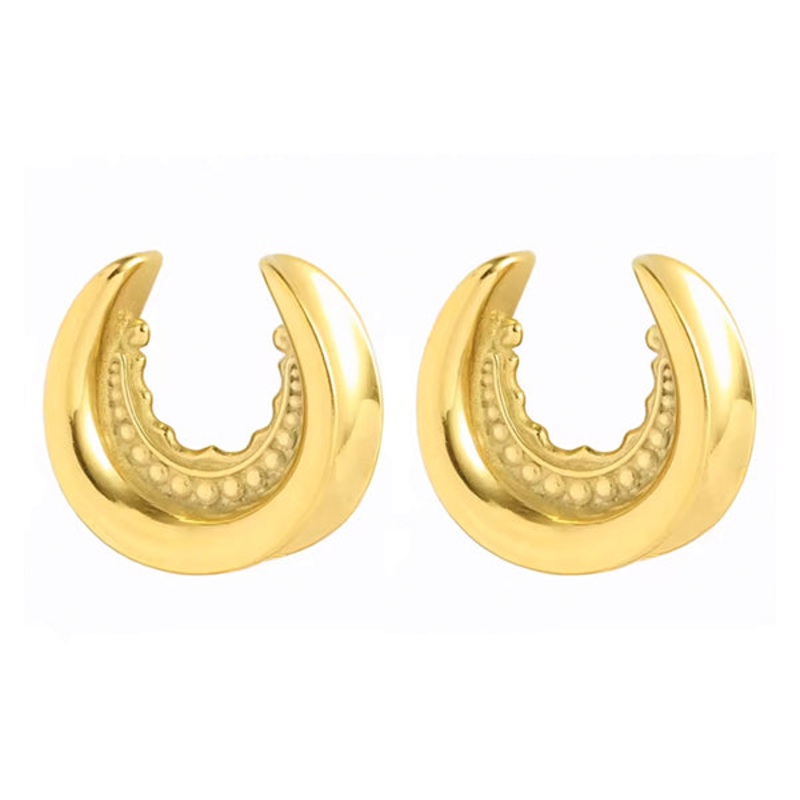 These bali saddle spreaders are made from gold PVD coated 316L stainless steel. We recommend buying these one size smaller than the double flare plugs you normally wear. Choose your size below.