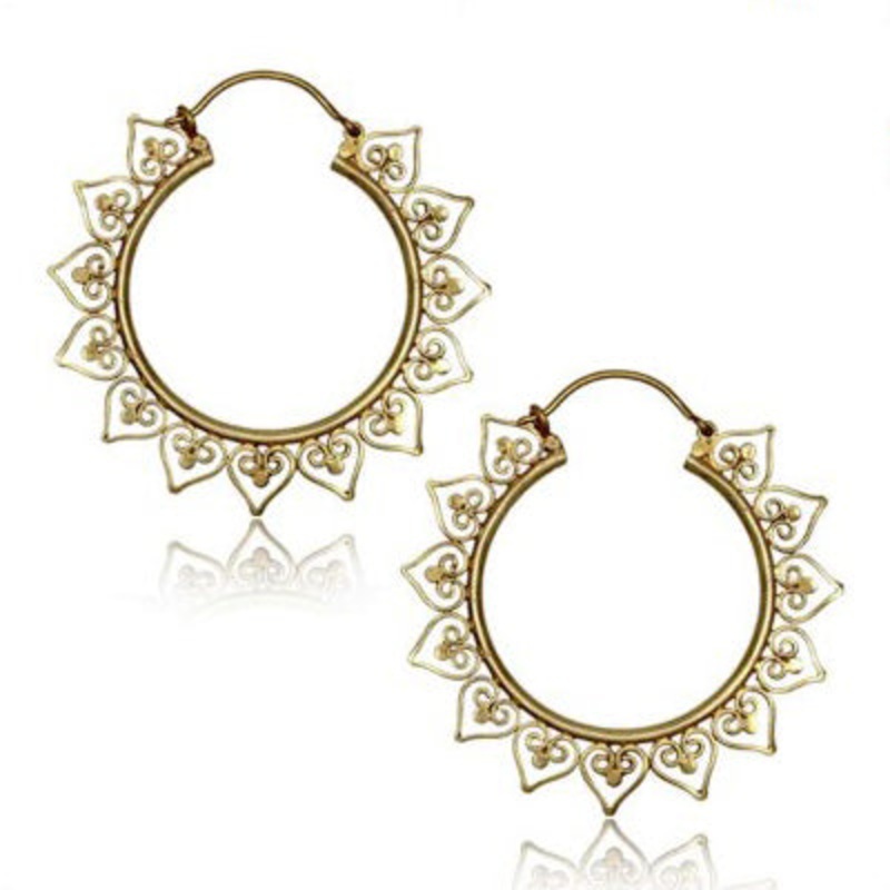 These 20 gaugebali heart hoop earrings are cast from solidyellow brass and approximately 50mm in diameter.
