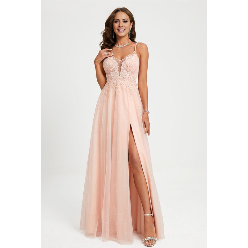 Ball dress princess V-neck and lace chiffon evening gown