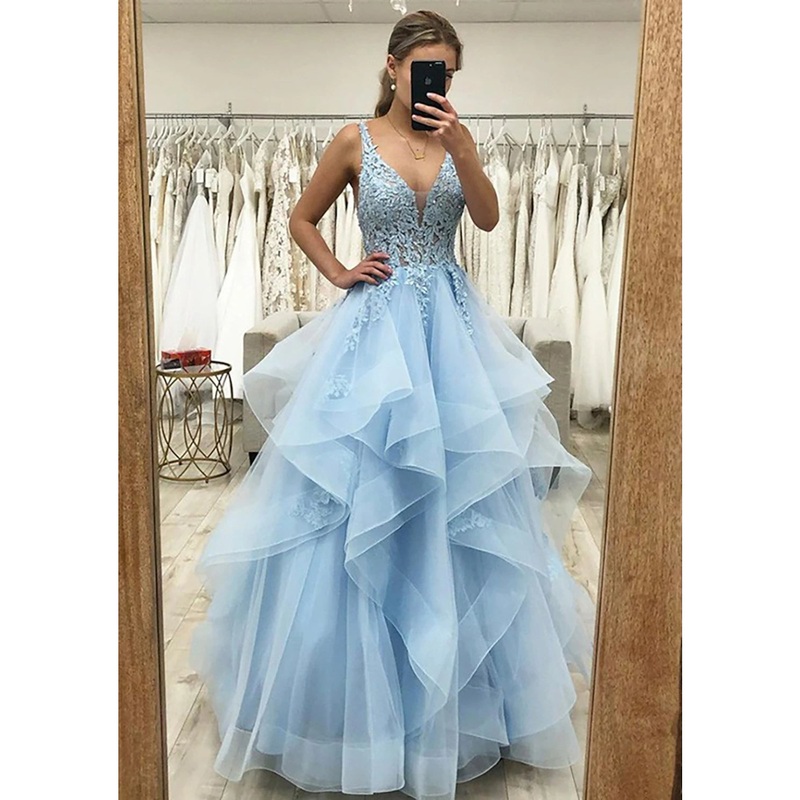 Be the first to review “Ball Gown A-Line Prom Dresses Princess Dress Formal Prom Floor Length Sleeveless V Neck Tulle Backless with Pleats Ruched Appliques” Cancel reply