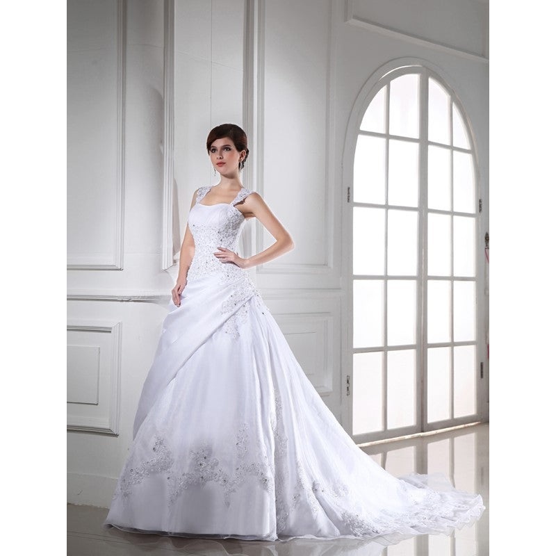 Ball Gown Beading Sleeveless Long Satin Organza Wedding Dresses
