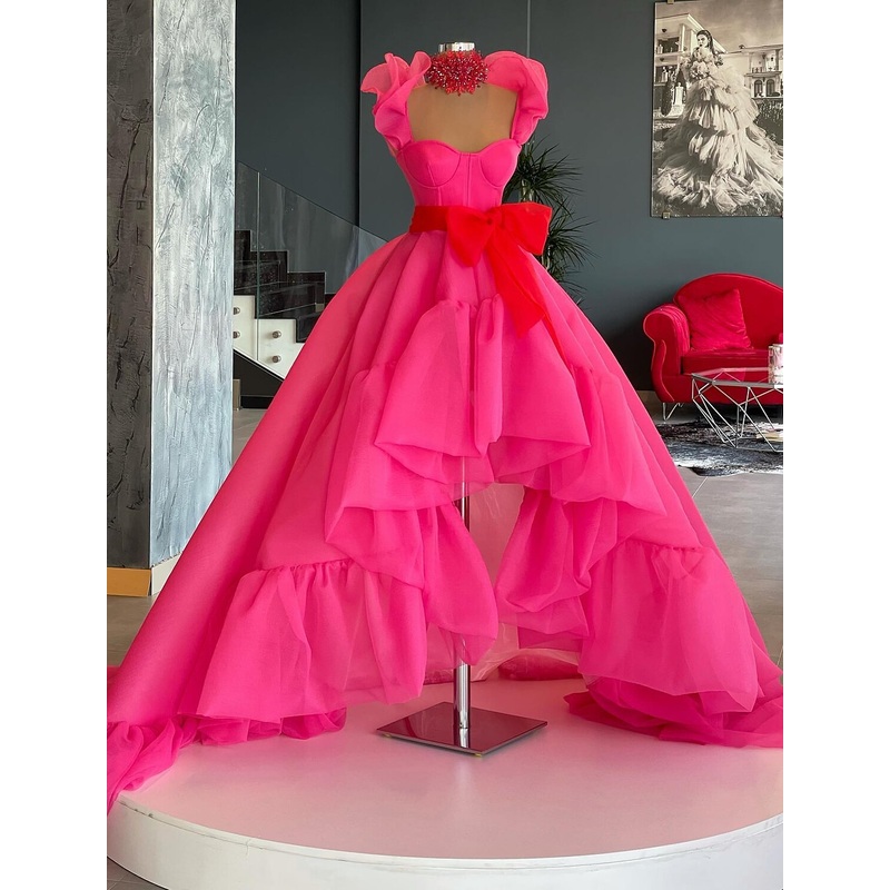 Be the first to review “Ball Gown Evening Gown High Low Dress Quinceanera Asymmetrical Sleeveless Square Neck Organza with Bow(s) Ruffles” Cancel reply