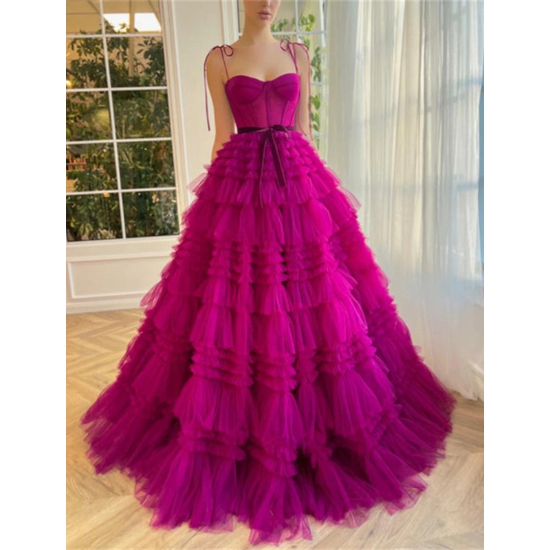 Be the first to review “Ball Gown Evening Gown Puffy Dress Wedding Party Birthday Floor Length Sleeveless Spaghetti Strap Tulle with Ruffles Strappy” Cancel reply
