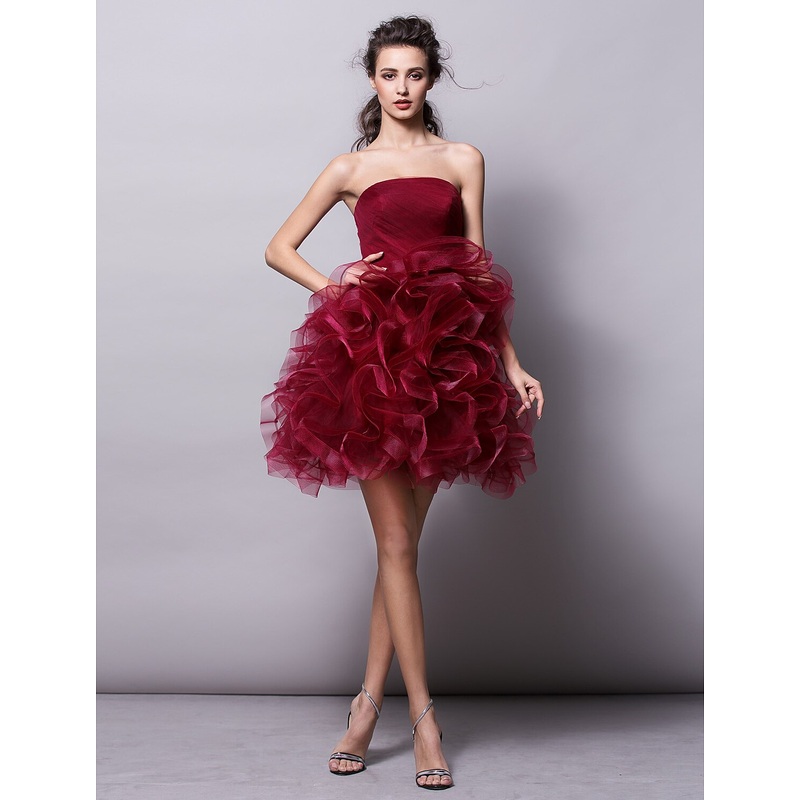 Ball Gown Hot Homecoming Cocktail Party Valentine’s Day Dress Strapless Sleeveless Short / Mini Tulle with Ruched Tier