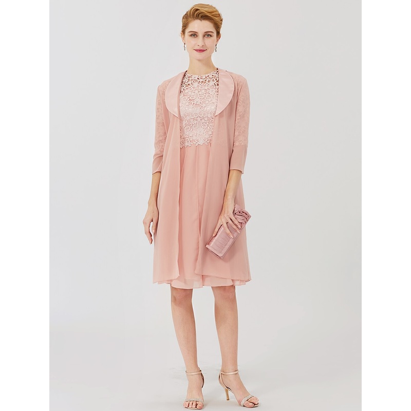 Be the first to review “Ball Gown Mother of the Bride Dress Formal Classic & Timeless Elegant & Luxurious Convertible Dress Illusion Neck Knee Length Chiffon Floral Lace 3/4 Length Sleeve with Crystal Brooch”