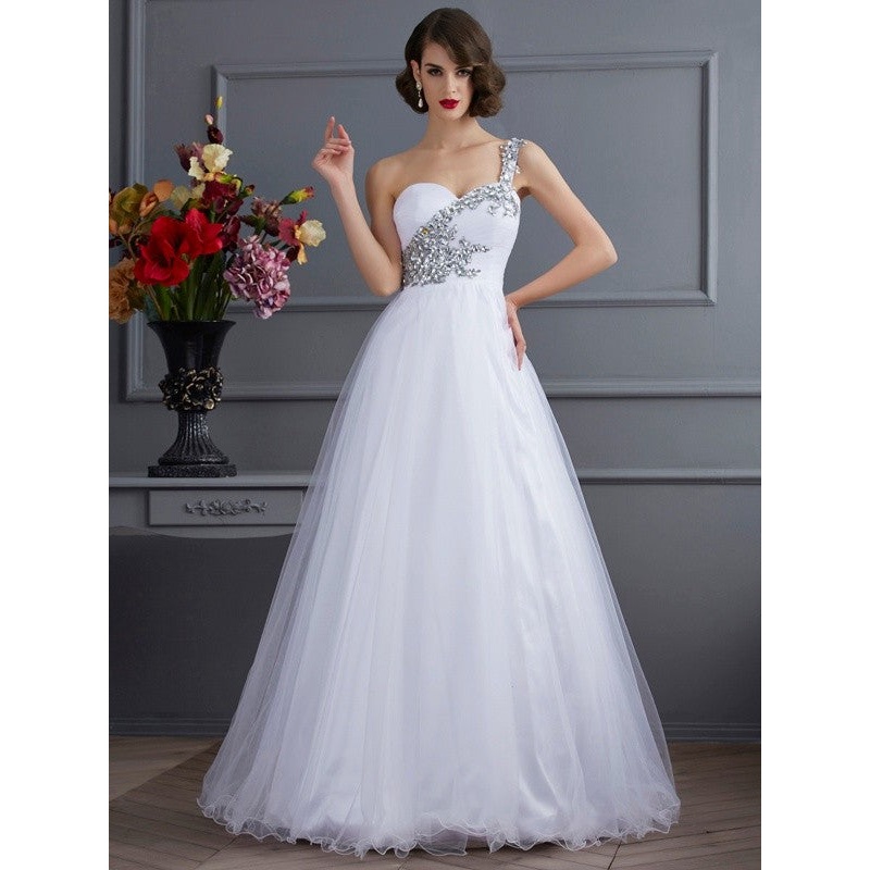 Ball Gown One-Shoulder Sleeveless Beading Long Tulle Quinceanera Dresses