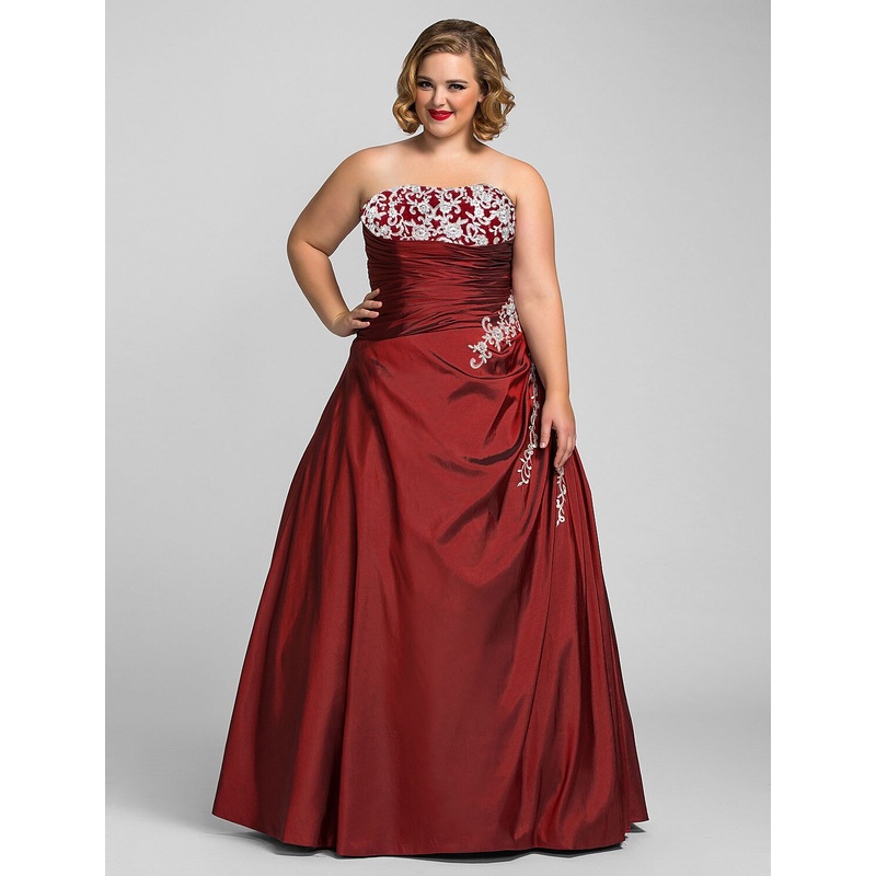 Ball Gown Plus Size Prom Formal Evening Dress Strapless Sleeveless Floor Length Taffeta with Beading Appliques
