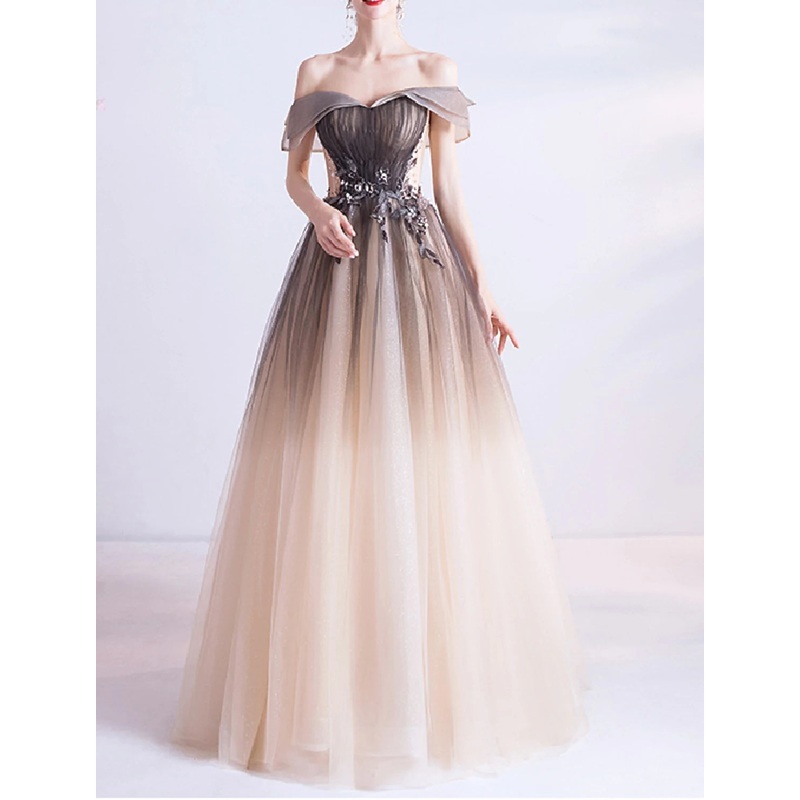 Ball Gown Princess Cute Prom Dress Off Shoulder Sleeveless Floor Length Tulle with Crystals Appliques