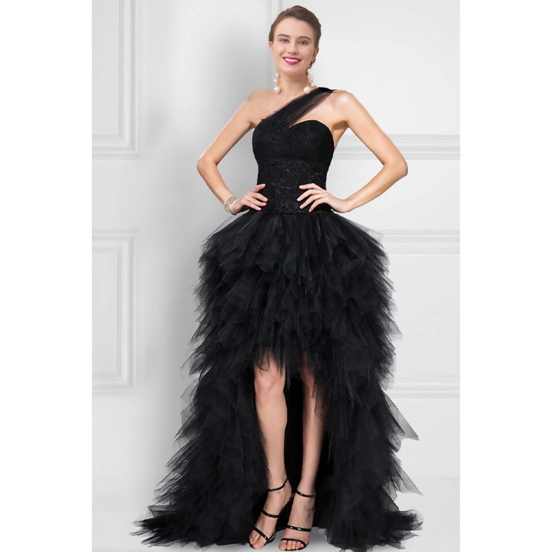 Be the first to review “Ball Gown Prom Black Dress Tiered Plisse Dress Masquerade Prom Asymmetrical Sleeveless One Shoulder Tulle Ladder Back with Pure Color” Cancel reply
