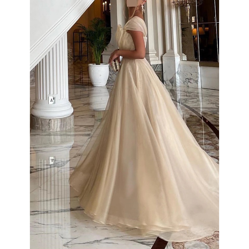Ball Gown Prom Dresses Elegant Dress Wedding Black Tie Court Train Sleeveless One Shoulder Organza with Ruched