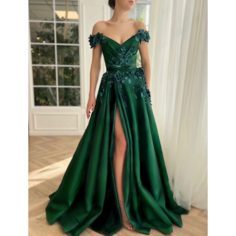 Ball Gown Prom Dresses Luxurious Dress Christmas Red Green Dress Wedding Party Floor Length Short Sleeve Off Shoulder Satin with Slit Appliques 2025