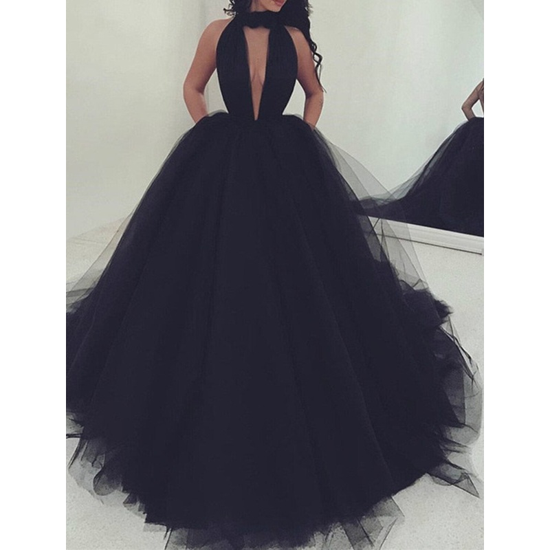 Ball Gown Prom Dresses Open Back Dress Wedding Party Sweet 16 Court Train Sleeveless Halter Neck Tulle Backless with Pleats