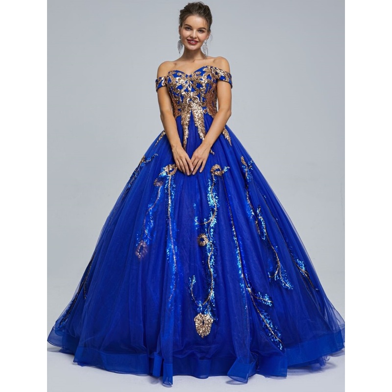 Be the first to review “Ball Gown Prom Dresses Sparkle & Shine Dress Quinceanera Floor Length Sleeveless Off Shoulder Tulle with Sequin”