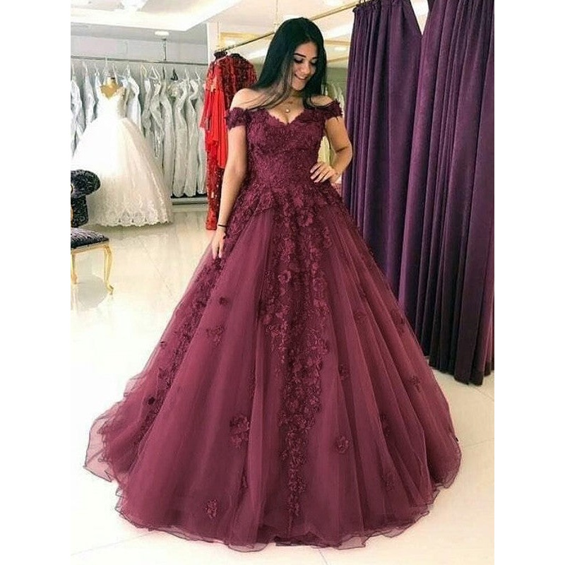 Ball Gown Sleeveless Off-the-Shoulder Sweep/Brush Train Applique Tulle Dresses