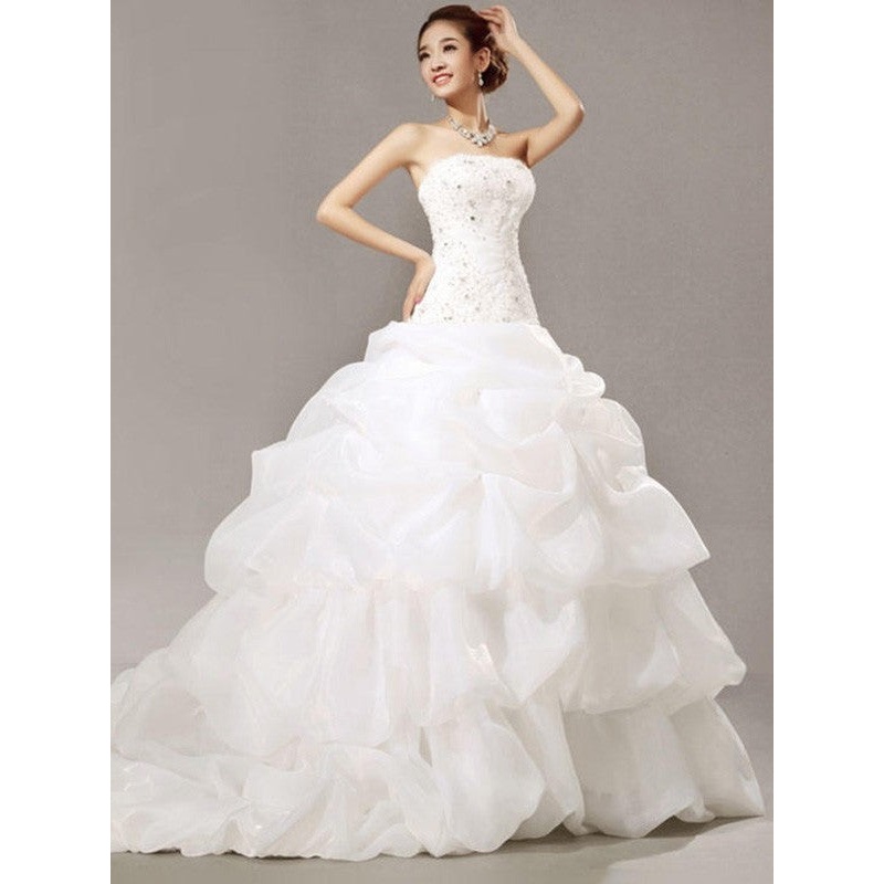 Be the first to review “Ball Gown Sleeveless Strapless Cathedral Train Beading Lace Pleats Organza Wedding Dresses”
