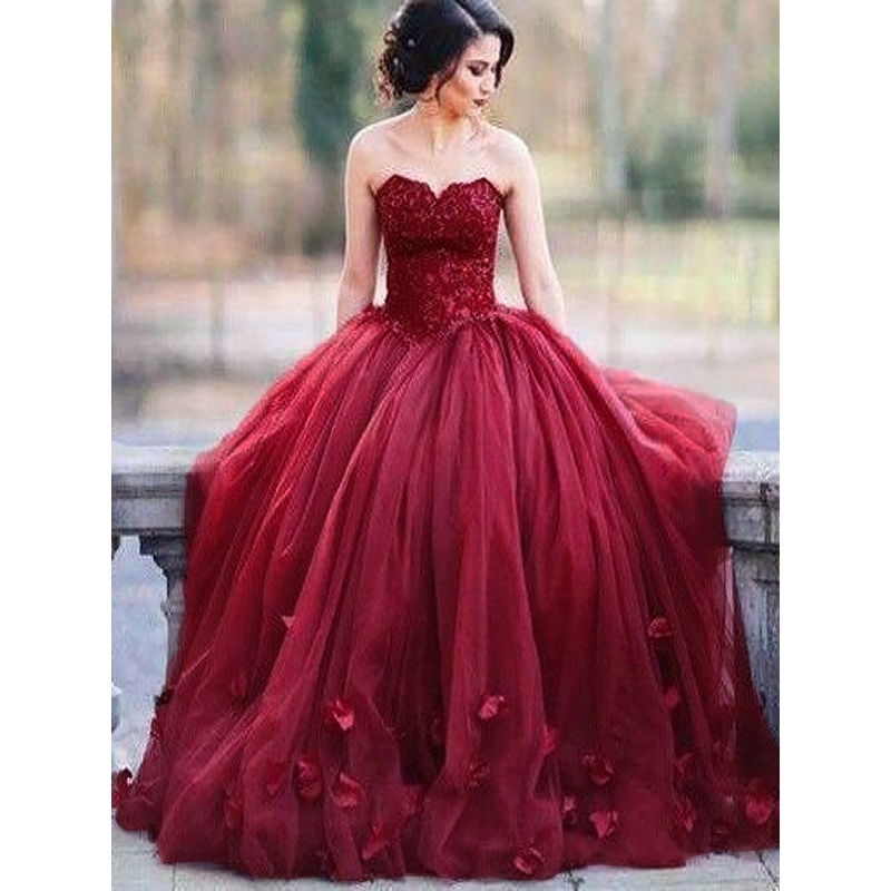 Ball Gown Sleeveless Sweetheart Applique Floor-Length Tulle Dresses
