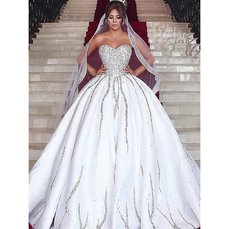 Ball Gown Sweetheart Satin Beading Sleeveless Sweep/Brush Train Wedding Dresses